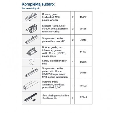 Sliding door system Hawa JUNIOR 80 B set with surface mounted ceiling tracki