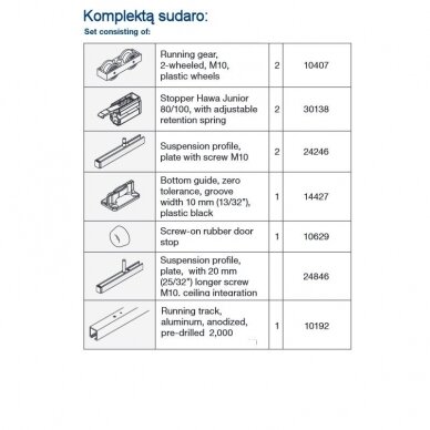– Fitting for top-running wooden doors up to 80 kg, with surface mounted running track.